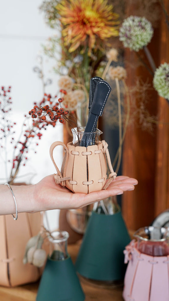 Material: Cow Leather, Borosilicate Glass
