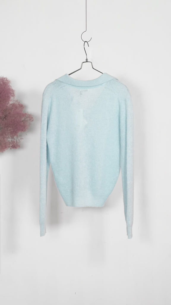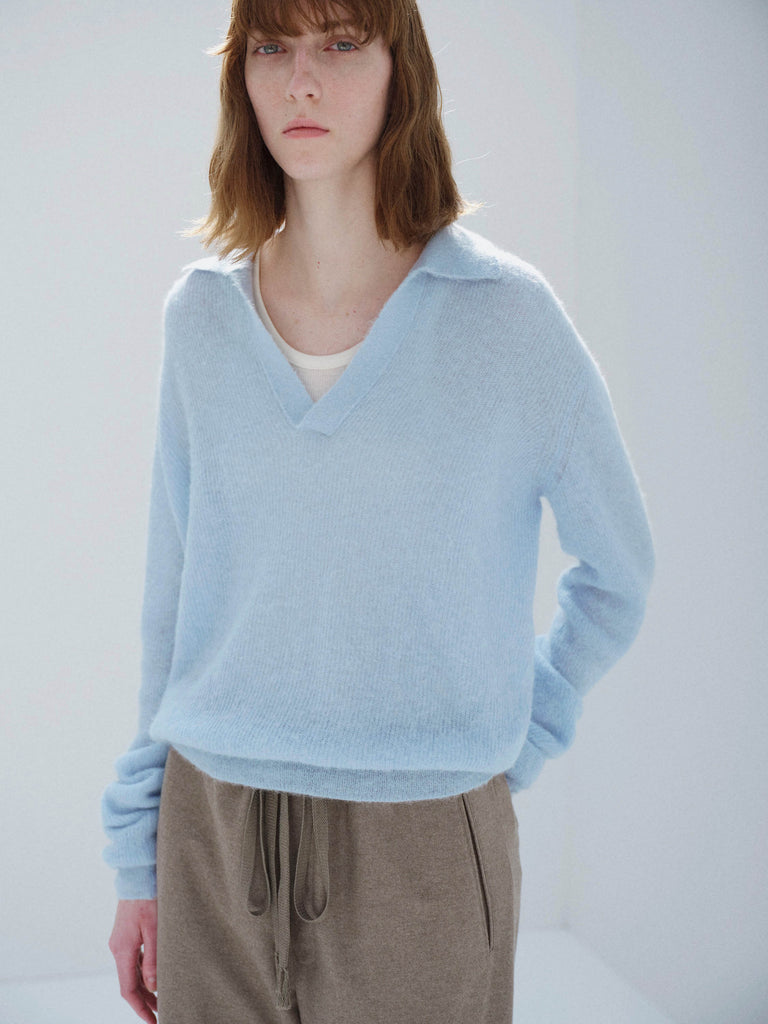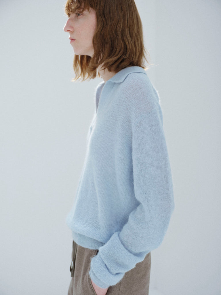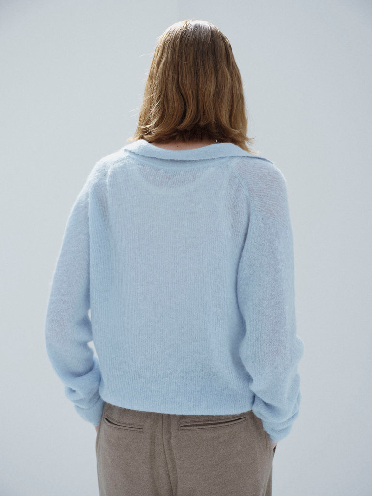 / Auralee Women Baby Suri Alpaca Sheer Knit Skipper Polo Light Blue